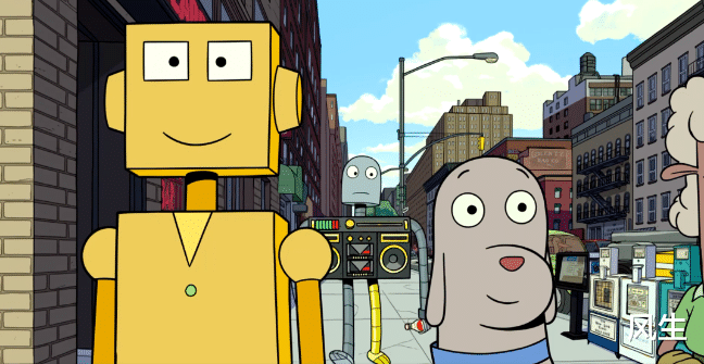 其实在结尾处机器人还有一个梦(幻想),这是在窗台看到楼下小狗带新机器人后产生的:机器人冲下楼与小狗相认;